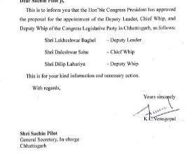 छत्तीसगढ़ कांग्रेस में बड़ी नियुक्तियां,विधायक लखेश्वर बघेल बनाये गए विधानसभा उप नेताप्रतिपक्ष
