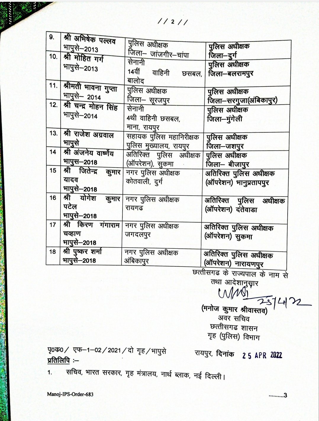 TRANSFER BREAKING : 18 IPS अफसरों का तबादला, ओपी पाल को बने रायपुर आईजी… आदेश जारी