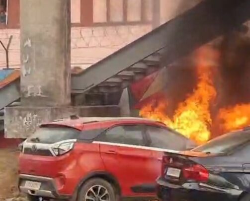 रायपुर कोर्ट के पास खड़ी कार में लगी भीषण आग, देखते ही देखते धधक उठी आग, कचहरी चौक में मची अफरा-तफरी