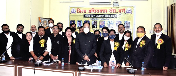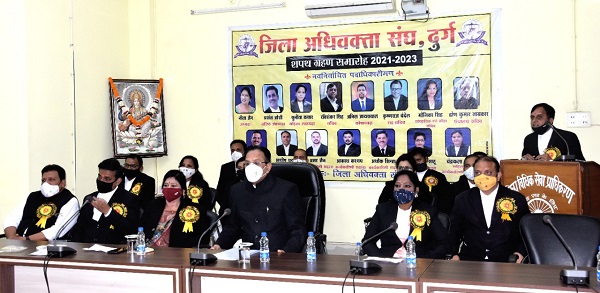 इस मौके पर जिला एवं सत्र न्यायाधीश राजेश श्रीवास्तव ने अपने संबोधन में कहा कि दुर्ग जिले में 13 महीनों में 16 हजार 322 प्रकरण निराकृत किये गये, जबकि इस अवधि में कोविड की वजह से कुछ समय न्यायालय बंद भी रहे। इस मौके पर उन्होंने संघ के 9 पदाधिकारियों और छह कार्यसमिति के सदस्यों को शपथ दिलाई। अधिवक्ता संघ की अध्यक्ष सुश्री नीता जैन ने इस मौके पर कहा कि शपथ ग्रहण का मौका बेहद अहम होता है। यह हमारी परंपरा रही है ताकि हम अपने कर्तव्यों का निष्ठा से पालन करें। वरिष्ठ उपाध्यक्ष प्रशांत जोशी ने आभार व्यक्त किया।