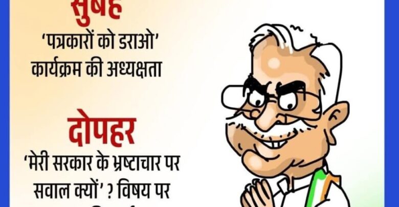 रायपुर – बीजेपी ने सोशल मीडिया पर एक पोस्ट जारी करते हुए पूर्व मुख्यमंत्री भूपेश बघेल पर निशाना साधा है। भारतीय जनता पार्टी ने सोशल मीडिया पर भूपेश बघेल के पोस्टर पोस्ट करते हुए आरोप लगाया है कि पत्रकारों को डराने और भ्रष्टाचार के मुद्दों से ध्यान भटकाने की कोशिश की जा रही है। बीजेपी की ओर से जारी पोस्ट में लिखा गया है कि “दिनभर का एजेंडा साफ है और इसी के जरिए पूर्व मुख्यमंत्री पर तंज कसते हुए कई गंभीर आरोप लगाए गए हैं।