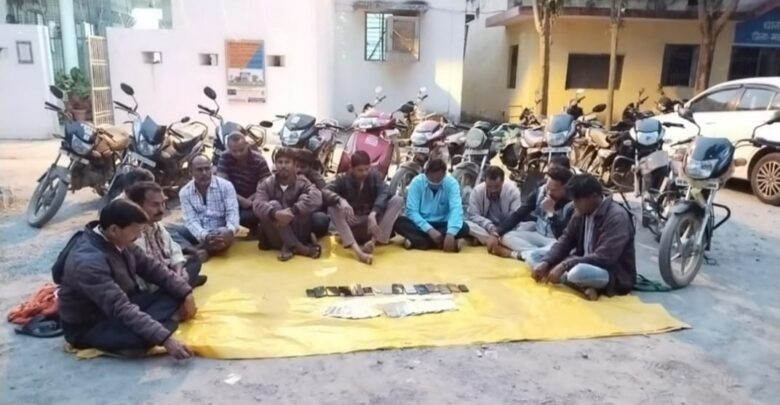 महासमुंद- पुलिस ने महासमुंद के ग्राम गोपालपुर में जुआ फड को लेकर छापेमार कार्रवाई है. पुलिस ने जुआ खेल रहे 13 जुआरिओ को गिरफ्तार किया है..वही पुलिस ने जुआरियो के पास से 42 हजार 570 रुपये नगद और 10 बाइक और 15 मोबाइल जब्त किये है.पूरा मामला पिथौरा थानाक्षेत्र का है..