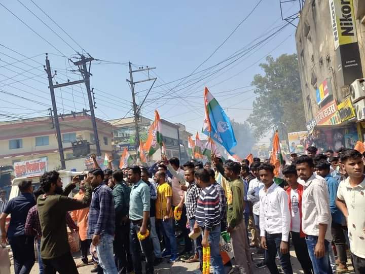विधायक देवेंद्र यादव का जुलूस शहर के मुख्य मार्गो से होते हुए गुजरा जहां पर युवा कांग्रेस कार्यकर्ताओं ने उनका फूल वर्षा कर भव्य स्वागत करते हुए एकजुटता का परिचय दिया है.