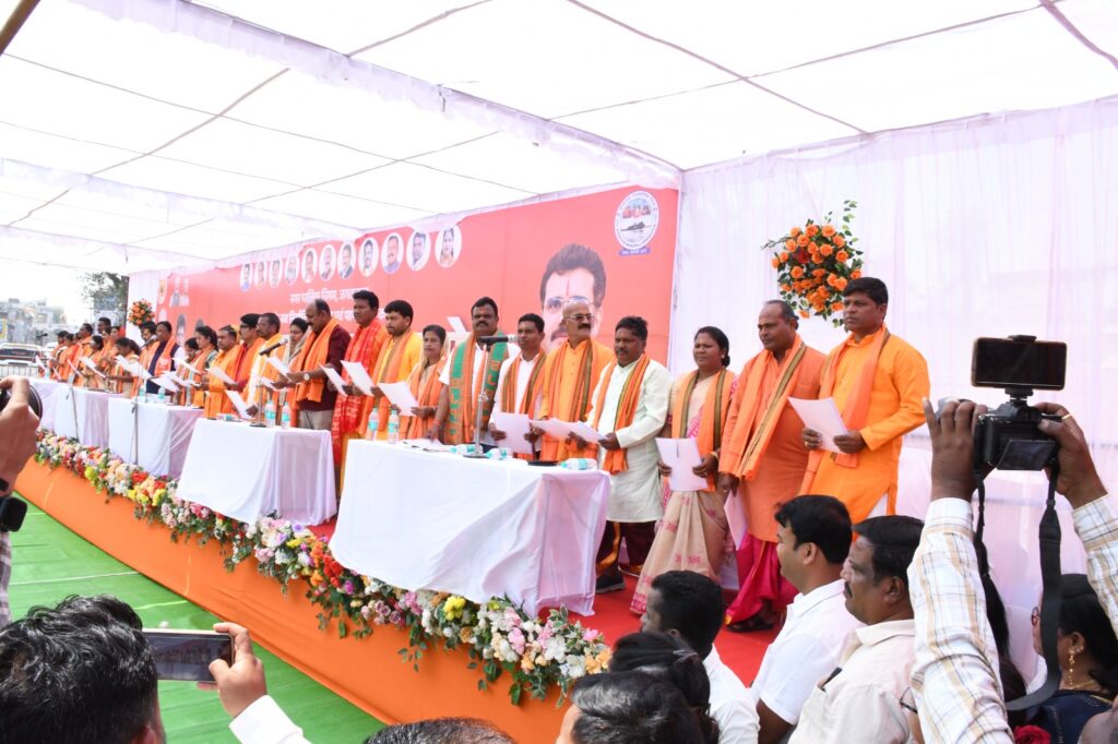 बस्तर संभाग के एक मात्र नगर पालिक निगम जगदलपुर के नवनिर्वाचित महापौर संजय पाण्डे सहित नवनिर्वाचित भारतीय जनता पार्टी के 30 पार्षदों ने आज मां दन्तेश्वरी मंदिर के सामने बनाए गए मंच पर सनातनी परंपरा के अनुसार आचार्यो द्वारा वैदिक मंत्रोचार के बीच शपथ ग्रहण किया। इस अवसर पर महापौर संजय पाण्डे सहित सभी पुरूष पार्षद सनातनी परंपरा के अनुरूप धोती एवं कुर्ता पहने हुए थे तथा सभी महिला पार्षद साड़ी पहनी हुई थी। शपथ ग्रहण के पूर्व अतिथियों ने सर्वप्रथम मां दन्तेश्वरी मंदिर पहुंचकर पूजा-अर्चना कर आर्शीवाद लिया। इसके बाद मंच पर मां दंतेश्वरी एवं भारतमाता के चित्र पर दीप प्रज्जवलित कर कार्यक्रम का शुभारंभ किया। दीप प्रज्जवल के बाद मुख्यअतिथि अरूण साव सहित सभी अतिथितियों ने नवनिर्वाचित महापौर संजय पाण्डे को सबसे पहले पगड़ी पहनाकर तिलक लगाया। उसके बाद जिला कलेक्टर एस. हरिश ने पहले संजय पाण्डे को महापौर पद की शपथ दिलाई, इसके बाद नवनिर्वाचित भारतीय जनता पार्टी के सभी 30 पार्षदों को एक साथ शपथ दिलाया गया।