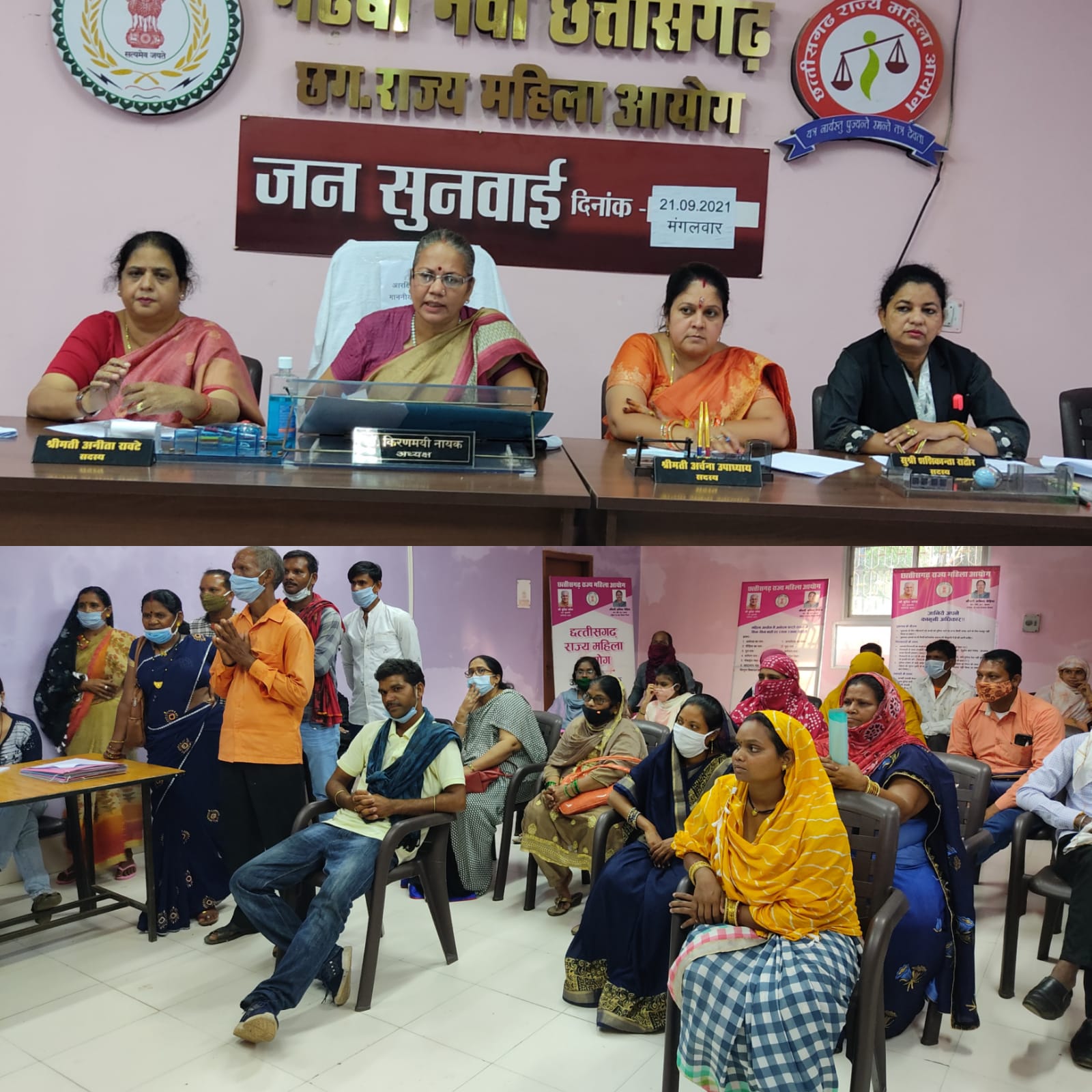रायपुर। राजधानी के शास्त्री चौक स्थित राज्य महिला आयोग कार्यालय में मंगलवार को महिलाओं से संबंधित शिकायतों के निराकरण के लिए सुनवाई की गई। जिनमे महिला आयोग के समक्ष महिला उत्पीड़न से संबंधित 20 प्रकरण सुनवाई के लिए रखे गए। वहीँ 20 प्रकरणो की सुनवाई हुई, जिसमे 8 प्रकरण नस्तीबद्ध किये गये, अन्य प्रकरण को आगामी सुनवाई में रखा गया है। राज्य महिला आयोग अध्यक्ष डॉ. किरणमयी नायक एवं सदस्य अनीता रावटे, शशिकांता राठौर एवं अर्चना उपाध्याय की उपस्थिति में प्रकरणों की सुनवाई की गई.