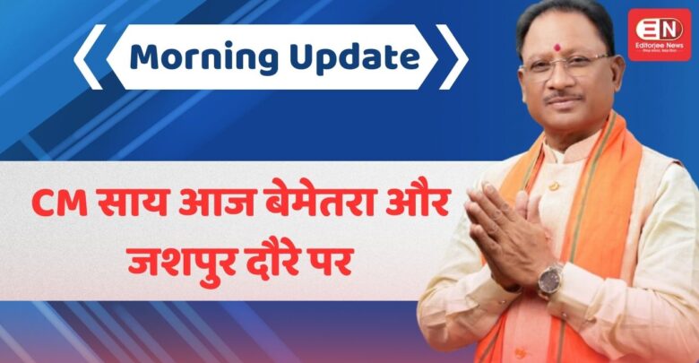 MorningUpdate:CM साय आज बेमेतरा और जशपुर दौरे पर,विभिन्न कार्यक्रम में होंगे शामिल