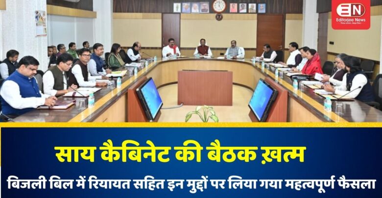 साय कैबिनेट की बैठक ख़त्म,बिजली बिल में रियायत सहित इन मुद्दों पर लिया गया महत्वपूर्ण फैसला