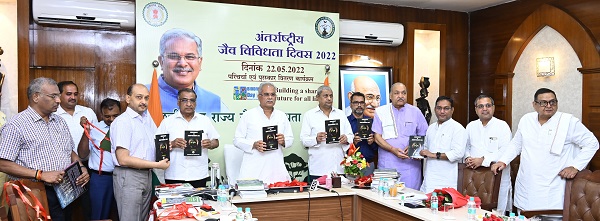 मुख्यमंत्री ने कार्यक्रम में लेखक डॉ. शिवाजी चवन की पुस्तक ‘छत्तीसगढ़ स्टेट बायोडायवर्सिटी स्ट्रेटेजी एण्ड एक्शन प्लान 2022-30‘, भारतीय वन सेवा के अधिकारी रामकृष्णा की गुरू घासीदास टाईगर रिजर्व में गुफा शैल चित्रों पर केन्द्रित पुस्तक ‘शेड्स ऑफ पास्ट‘, गौरव निहलानी, ज्ञानेन्द्र पाण्डेय, वसुन्धरा प्राकृतिक संरक्षण समिति की पुस्तक ‘छत्तीसगढ़ में ईको पर्यटन – संभावनाएं एवं चुनौतियां‘, शैलेन्द्र उईके और भारतीय वन सेवा के श्रीनिवास टी. की पुस्तक ‘अ फिल्ड गाईड टू फॉरेस्ट ग्रासेस ऑफ छत्तीसगढ़‘, डॉ. विवेक कुमार सिंघल तथा डॉ. हेमकांत चंद्रवंशी अंकित सेवा संस्थान की पुस्तक‘ बायोडायवर्सिटी इन छत्तीसगढ़्स स्वाईल‘ तथा ‘इनसेक्ट बायोडायवर्सिटी ऑफ छत्तीसगढ़‘ का विमोचन किया।