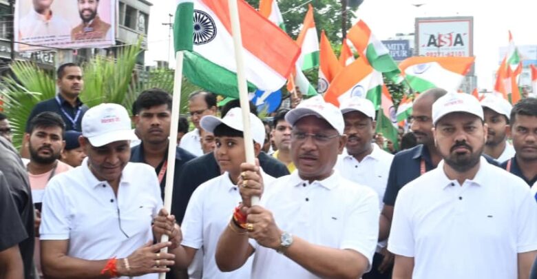रायपुरः हमारा तिरंगा पूर्वजों के वर्षों के संघर्षों और बलिदान का जीवंत प्रतीक है। हम सभी तिरंगे की शान को हमेशा बनाए रखेंगे, अपने अमर बलिदानियों को कभी नहीं भूलेंगे और सभी मिलकर विकसित, समृद्ध और सशक्त छत्तीसगढ़ का निर्माण करेंगे। मुख्यमंत्री विष्णु देव साय आज राजधानी रायपुर के मरीन ड्राइव में आयोजित स्वतंत्रता दौड़ में शामिल हुए और कार्यक्रम को संबोधित किया। इस दौरान उन्होंने हजारों युवाओं के साथ स्वतंत्रता दौड़ लगाई और भारत माता और अमर बलिदानी रानी दुर्गावती की प्रतिमा पर माल्यार्पण कर उन्हें नमन किया।