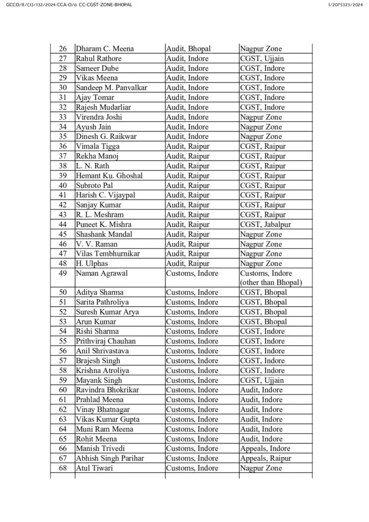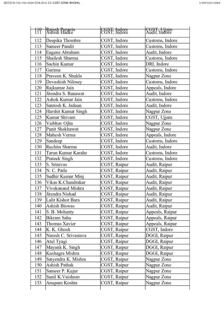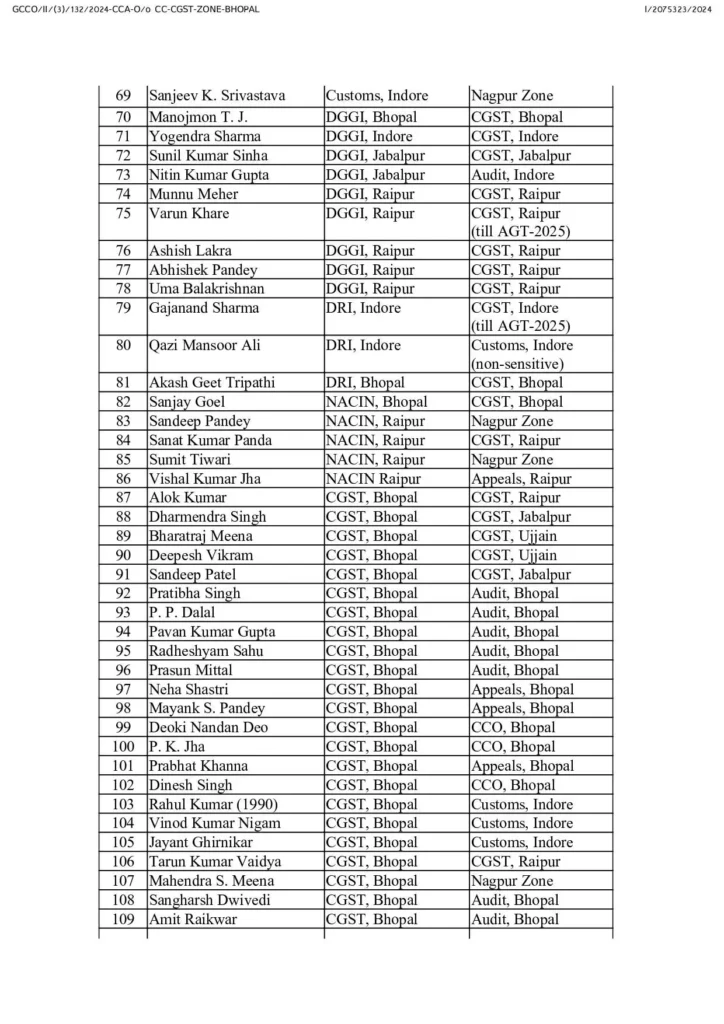 Transfer News : सेंट्रल जीएसटी के कई अफसरों का ट्रांसफर, आदेश जारी, देखें लिस्ट…