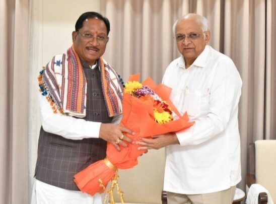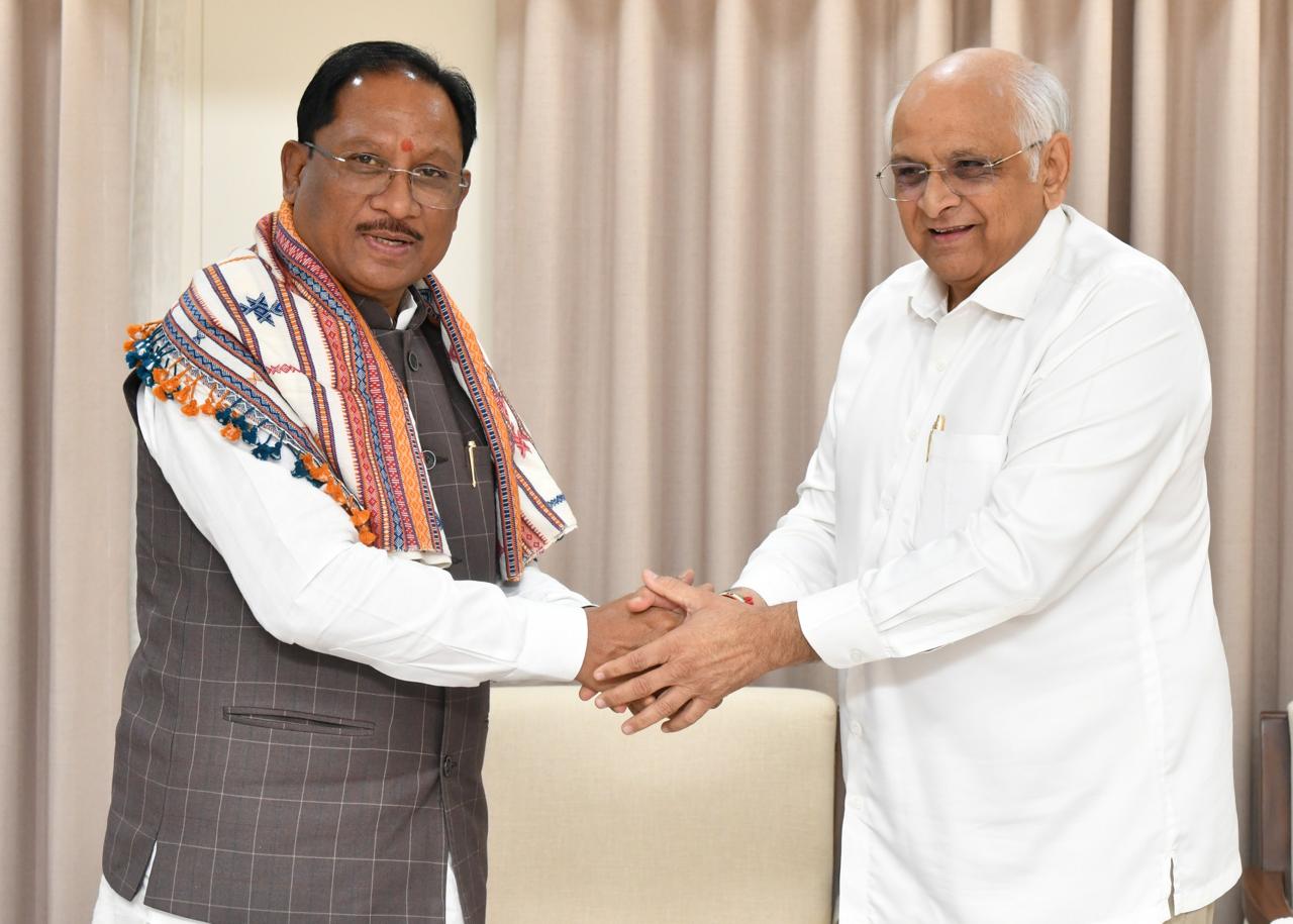 सीएम विष्णुदेव साय ने की गुजरात के सीएम भूपेंद्र पटेल से सौजन्य भेंट, साझा किए सहयोग एवं विकास के अनुभव