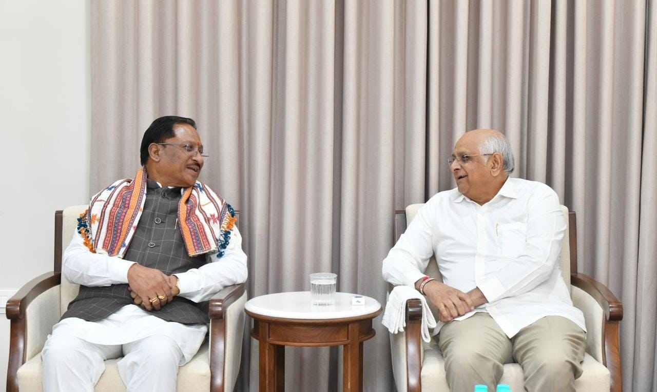 CM Sai In Gujarat: दोनों मुख्यमंत्रियों ने भविष्य में गुजरात और छत्तीसगढ़ के बीच विभिन्न क्षेत्रों में परस्पर सहयोग को और सशक्त करने पर सहमति व्यक्त की।