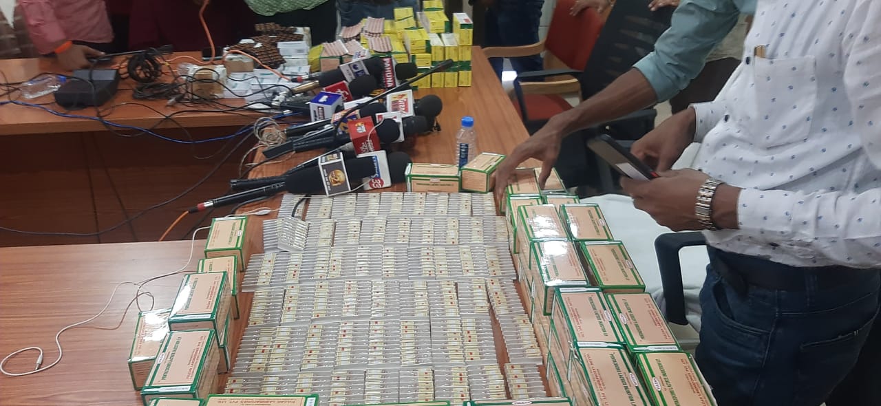 इसी प्रकार नारकोटिक्स सेल की टीम को 22 को सूचना प्राप्त हुई कि कुछ व्यक्ति रेलवे स्टेशन के पास प्रतिबंधित नशीली टेबलेट बिक्री करने की फिराक में ग्राहक की तलाश कर रहे है। जिस पर वरिष्ठ अधिकारियों के निर्देशन में नारकोटिक्स सेल, सायबर सेल एवं थाना गंज की संयुक्त टीम के सदस्यों द्वारा उक्त स्थान में जाकर मुखबीर द्वारा बताये व्यक्तियों को चिन्हांकित कर पकड़ा गया। पूछताछ पर व्यक्तियों ने अपना नाम अनिल डडसेना उर्फ गोलू निवासी डी.डी.नगर तथा टूनु अग्रवाल एवं अमजद खान निवासी उड़ीसा का होना बताये। टीम के सदस्यों द्वारा उनकी तलाशी लेने पर उनके पास नाइट्रोसन-10 प्रतिबंधित नशीली टेबलेट रखा होना पाया गया। उक्त प्रतिबंधित नशीली टेबलेट के संबंध में उनसे वैध दस्तावेज या अन्य कागजात प्रस्तुत करने कहने पर उनके द्वारा इस संबंध में किसी प्रकार का कोई वैध दस्तावेज या अन्य कागजात प्रस्तुत न कर टीम को लगातार गुमराह किया जा रहा था। जिस पर तीनों आरोपियों को गिरफ्तार कर उनके कब्जे से कुल 1070 नग नाइट्रोसन-10 प्रतिबंधित नशीली टेबलेट जुमला कीमती लगभग 20,000/- रूपये जब्त कर आरोपियों के विरूद्ध थाना गंज में अपराध क्रमांक 47/22 धारा 21 नारकोटिक्स एक्ट का अपराध पंजीबद्ध कर अग्रिम कार्यवाही किया गया। पूछताछ में आरोपियों द्वारा उक्त टेबलेट को उड़ीसा निवासी तापस परीड़ा से क्रय कर रायपुर लाना बताया गया है।