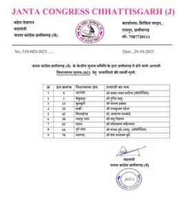 CG Breaking : JCCJ ने जारी किया 9 उम्मीदवारों की एक और सूची, देखें लिस्ट…
